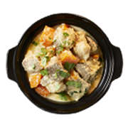 2. Faites chauffer l'huile dans une grande casserole. Ajoutez la viande coupée en gros dés. Faites-la cuire jusqu’à obtention d’une couleur dorée, puis retirez-la.
