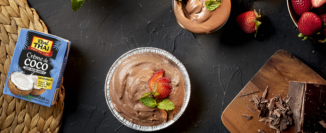 4. Mélangez avec 200 ml de lait de coco Real Thaï et le chocolat fondu.