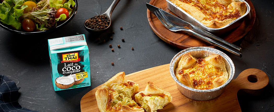 2. Chauffez une cuillère à soupe d’huile dans une casserole. Ajoutez 1 cuillère à café de pâte de curry rouge Real Thaï, laissez cuire quelques minutes. Verser 200ml de lait de coco, mélanger et porter à ébullition.